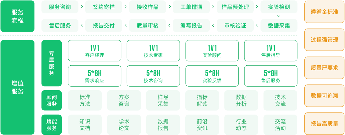 持续改进管理体系,优化服务流程,按时交付实验报告、产品或服务,及时响应客户咨询、处理客户投诉