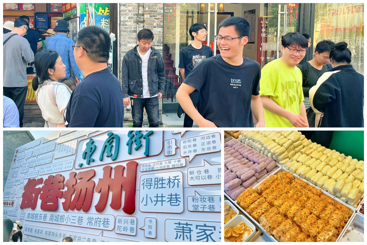 古色古香的店铺门前,飘着诱人的香气。大麒麟阁的百年糕点、阿三嫂的地道淮扬菜、聚香斋的酥脆烧饼、高氏的祖传桂花米糕…勾起了伙伴们对美食的无限向往。